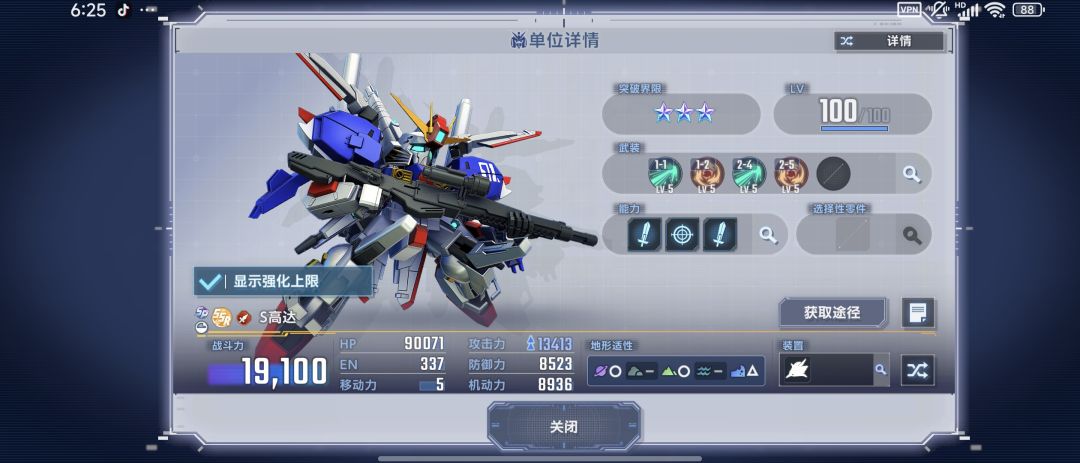 满级满破攻击属性与突击自由高达差不多,满血加30%的攻,武器距离最远5格,5级加20%暴击。最关键的来了,他吃一击必杀加成,有了它如果你还有西罗,那你就盘活了西罗,因为他还吃西罗45级加成,西罗可以扔了他那辆地形属性差的机体。而且西罗60级有加攻击距离的技能,即使你打不死对面的,对面也摸不着你,那你满血加成也不会破。
