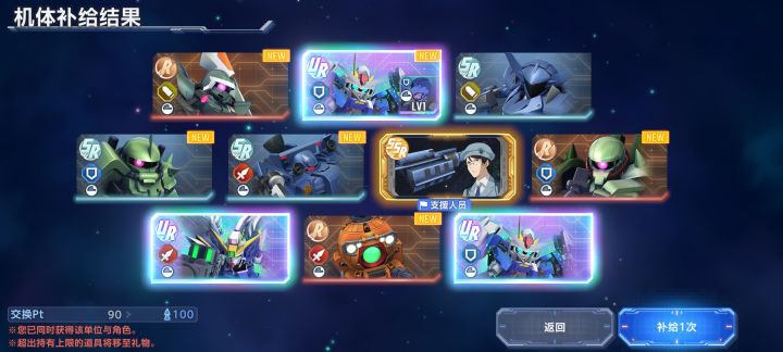 47抽溢出了几个小垃圾ur,送的限定送了一个没有的Z高达(算是我最喜欢的一个机体了)九万钻300抽,运气一般,没出船也没出托3,只出了4个掉毛和4个oor,也不算差大师联盟的S0到现在的S10总共11次大师联盟,每次都拿满了奖励,换了挺多万能船突破,这次的限定船皇小姐看上去不是很强,先等一波不着急满破