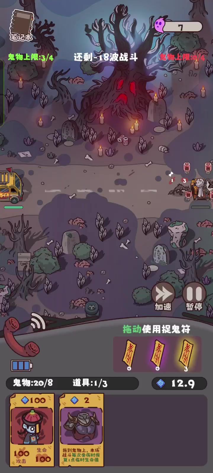 无脑养白无常就行,自带复活可以做到推全图,打到有缝合的关卡把尸犬和白无常缝合,这样白无常就1费了(我是因为属性高了懒得再合),地图遇到加属性全给白无常就行,后期要小心嘲讽怪,有时走到半路就被打死了,所以要抓一只嘲讽怪,我用的水鬼,嘲讽+复活+反伤,也可以把火鬼缝成1费刷点属性融合?太麻烦了我养了一会就放弃了 最后游戏还有点bug,100-100的怪不知道哪来的,可能是显示错误,我的嘲讽怪打死复活