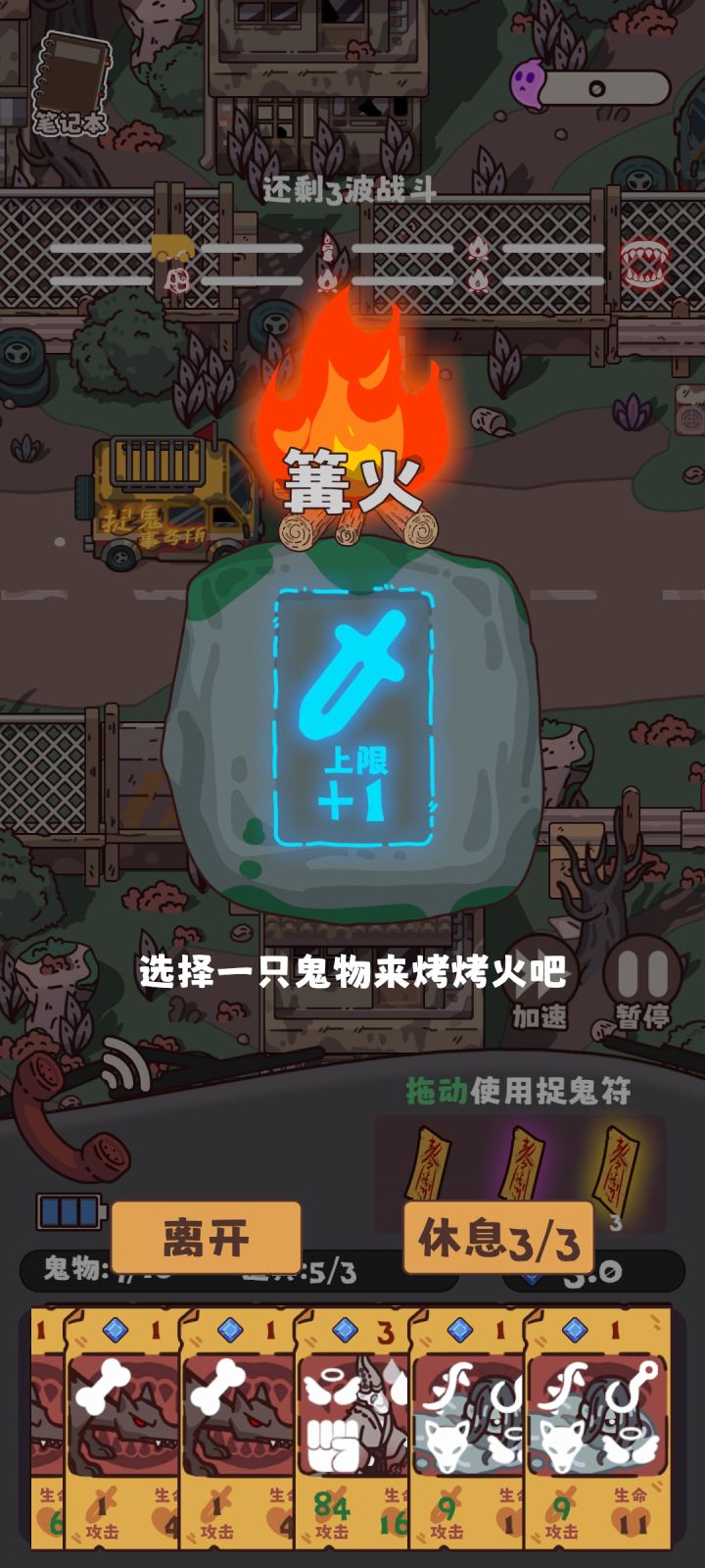 1、开局首先点界面上方的油桶看一次广告,领三只“尸犬”2、点放映厅看三次广告,领一只“白无常”3、进副本推图,看见“火堆”🔥就选,有三次机会只用第一次。将属性加给看广告领的“尸犬”(火堆属性全往一只怪身上堆,做单C)4、推到第三关“葬礼”,会出现“蜡烛”可用于进行献祭功能。上面放培养过的“尸犬”,下面放“白无常”。进行献祭将获得一只“尸犬”:属性培养过、印记为“遗骸、灵泉、涅槃、??”。副