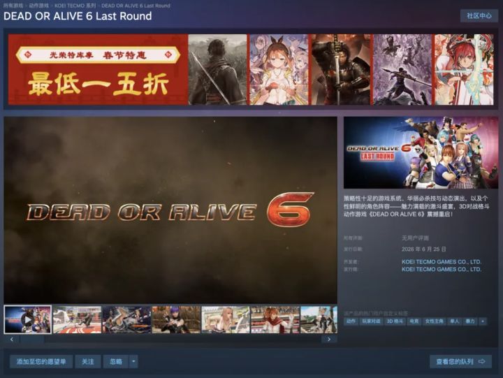 光荣特库摩官宣《死或生6:最后一战》 6月25日登陆