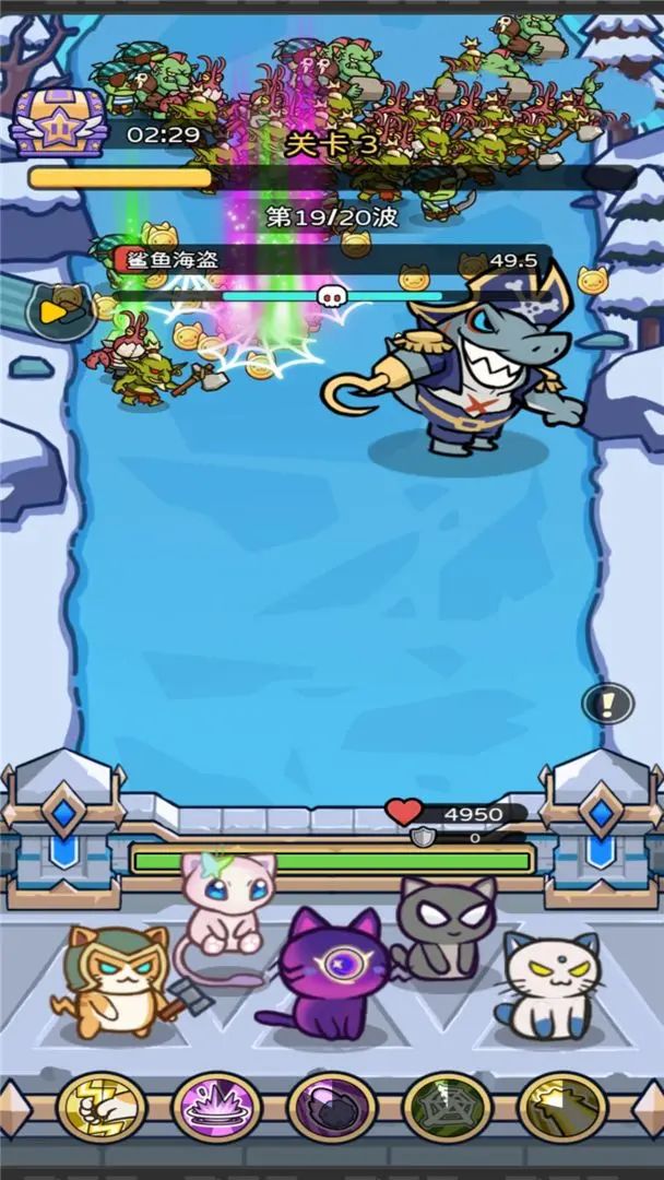 1. 闪电喵 ——【雷电法王】定位:全屏清场 / 机动性输出技能:▶ 雷光连斩:跳跃中连续释放 3 道闪电链,对路径上敌人造成麻痹效果(移动速度 - 50%,持续 3 秒);▶ 电磁屏障:塔防模式下展开电场护盾,反弹远程攻击并对触发电场的敌人造成持续伤害。萌点:⚡ 耳朵会随技能释放闪烁蓝光,尾巴尖端有迷你闪电特效;⚡ 口头禅:“打雷要下雨,雷欧~(掏出小锤子)”2. 冰霜喵 ——【冰