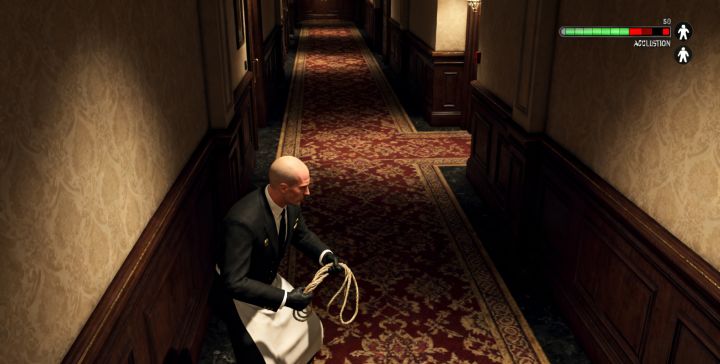 新增的“本能模式”是点睛之笔,开启后能透过墙壁看到敌人位置和巡逻路线,还能预判他们的移动轨迹,新手靠这个模式能快速上手,老手则能用它规划更精妙的暗杀路线。不过本能值有限,不能一直开启,得靠完成完美暗杀、隐藏尸体等操作补充,这就要求你不能过度依赖,还是要靠自身判断。环境互动也做得很出色,几乎每个场景都有可利用的道具:把迪斯科球的开关打开,让它砸向下方的目标;在加油站引爆油桶制造混乱;甚至能把毒药掺进咖啡、饮料里,每种方式都能达成暗杀目标,自由度相当高。