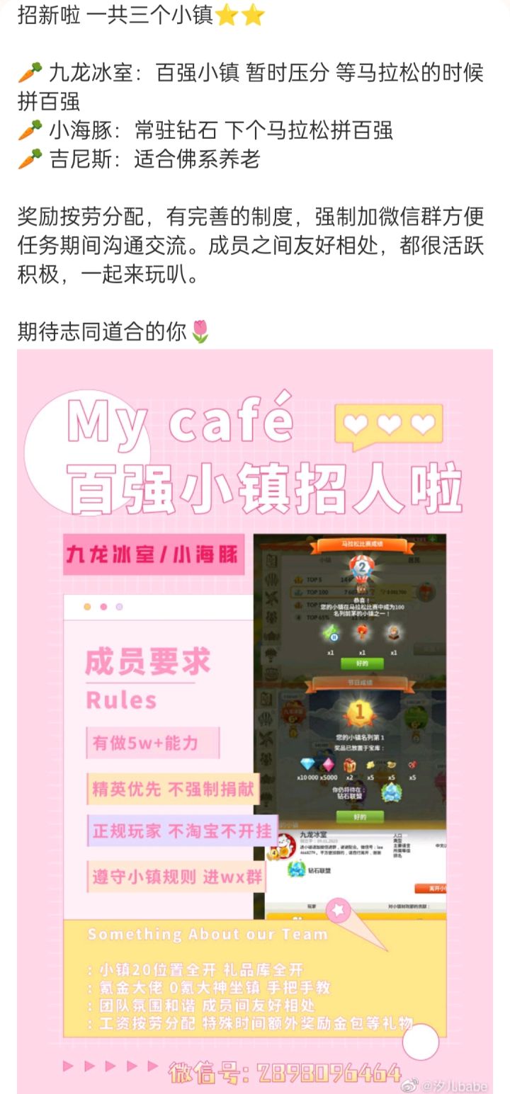 小镇招人啦,目前开了三个小镇,可佛可拼两个拼镇,一个佛系小镇。拼镇要求可做5w🏆,不会一直拼,会压分。要正规玩家哦,不要淘宝或破解版。有兴趣的朋友➕wx: 2898096464(专门负责新人)
