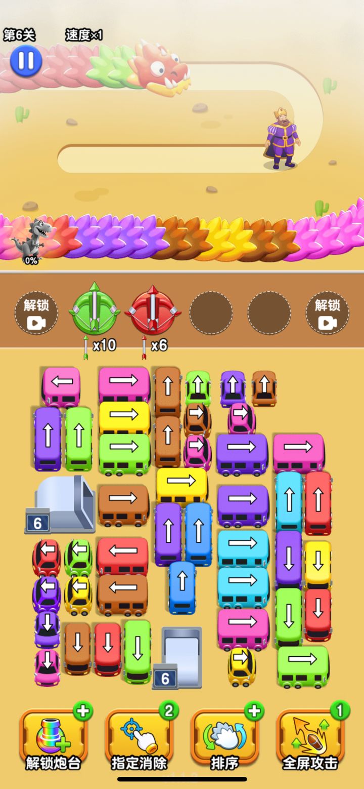找了挺久的taptap,发现了这个宝藏游戏。玩法还挺创新的,通过点击相应色块,生成炮台从而消除巨龙身上的色块。
