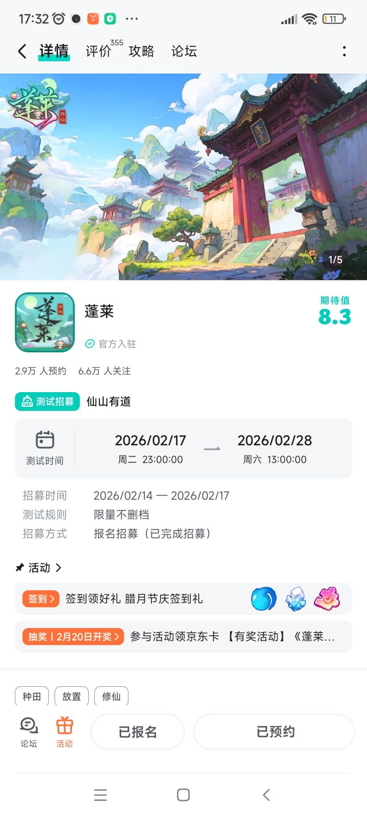 已关注,预约,期待一下蓬莱上线,希望蓬莱越来越好,蒸蒸日上,人气超多。
