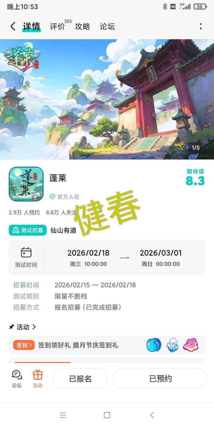 已关注,预约,期待一下蓬莱上线,希望蓬莱越来越好,蒸蒸日上,人气超多。