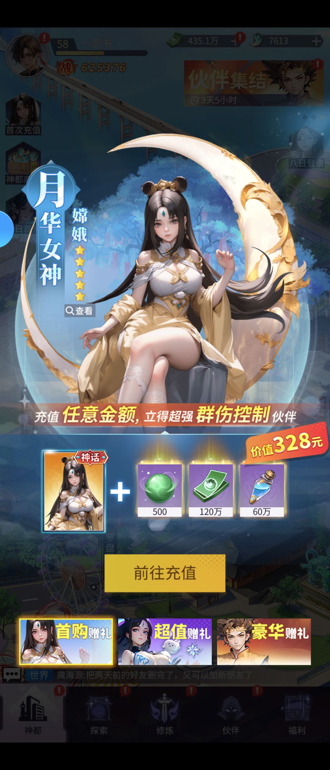 新手配队攻略和氪金思路 由于二区的福利被砍,攻略不得不做些调整 20级千抽不要乱选,一定要抽到嫦娥或者阎罗王才能选,因为前期平民能养的就只有他们两个,抽不到没关系,可以重开再选,阎罗王需要十星才能起伤害,而且十星有苛刻的前置条件,所以还是推荐开局用嫦娥当主c。 首充6元和98元可以分别获得两只嫦娥,一共三只嫦娥,这样就能升九星,阎罗王把活动做满,充值98元,免费解锁大月卡和小月卡,也能获得两只。 小