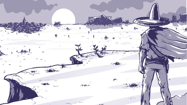 这是 1873 年。一名逃亡的奴隶在沙漠中步履蹒跚,希望从墨西哥逃到德克萨斯州。他手拿一把左轮手枪,带着一顶从死人身上偷来的墨西哥帽。