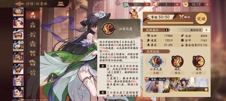 这游戏真的,孙鲁班大招给野兽行动加伤害的然后她定位输出,然后阵图的大被动加成是击杀目标加伤,高于生命值加伤等等,然后召唤出来的老虎是吃不到锦囊4件套效果,吃不到装备技能效果,吃不到阵图,吃不到任何其他加成,包括时实召唤者的增伤还是减伤都吃不到。那么你出这个武将的阵图意义何在?然后锦囊4件套输出锦囊出了南蛮入侵没一个能用,只能武将本体触发,不用大招那么大招等于摆设,用平a来a人吗?,就一个半成品玩意