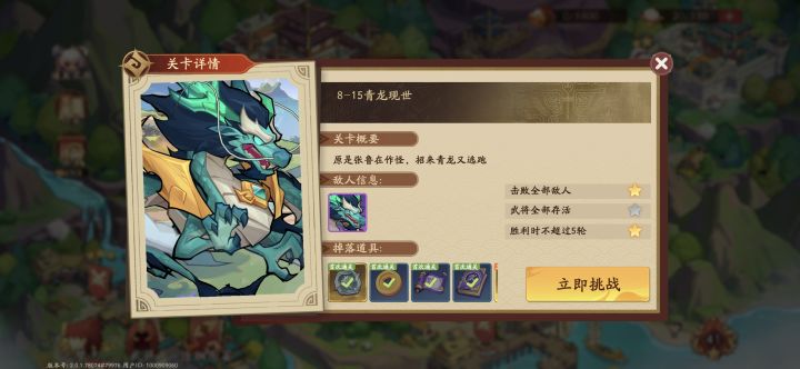 低战力直接过的,就靠着高星张星彩叠伤害三回合打掉。这图尽量手操,一速孙尚香破甲,二速刘备(何太后可选)加buff,三速夏侯氏,四速张星彩。坦克可以选张鲁,直接庇护星彩驱散让他活着就行。多手操,让张鲁和张星彩尽量有怒气开大。叠满五层以上的星彩,两刀剁碎青龙梦。可以说张星彩是目前最好应付这种单boss的选手。因为有15%目标生命的伤害额外伤害,会比其他单体输出都更好打。张星彩锦囊带暴击攻