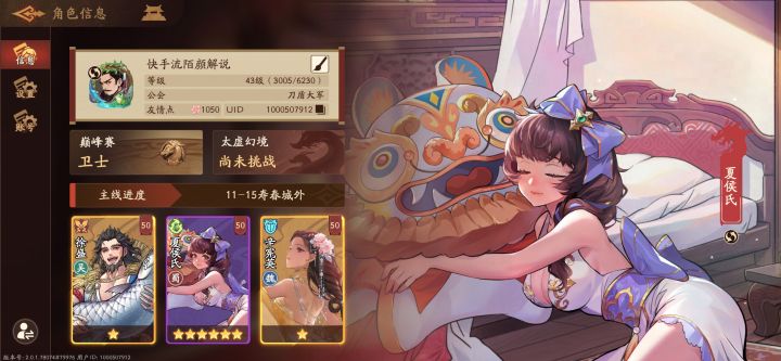 哈喽各位主公们,我流某又来了,今天给大家带来一个全方位的讲解,不管你是满氪金的大佬玩家,还是零氪的平民玩家,在这里都能找到适合你们玩的玩法首先第一件事,要让大家知道这是什么类游戏,这款游戏其实跟怒焰三国杀的玩法一样养成,但是又不是类似打牌游戏,其实这款游戏就是某米哈加三国元素的一款PVP养成类游戏,不要具体的操作也能玩,也没什么技术操作可言,只要知道数值和你要玩哪种阵容搭配就行了好了游戏介绍玩