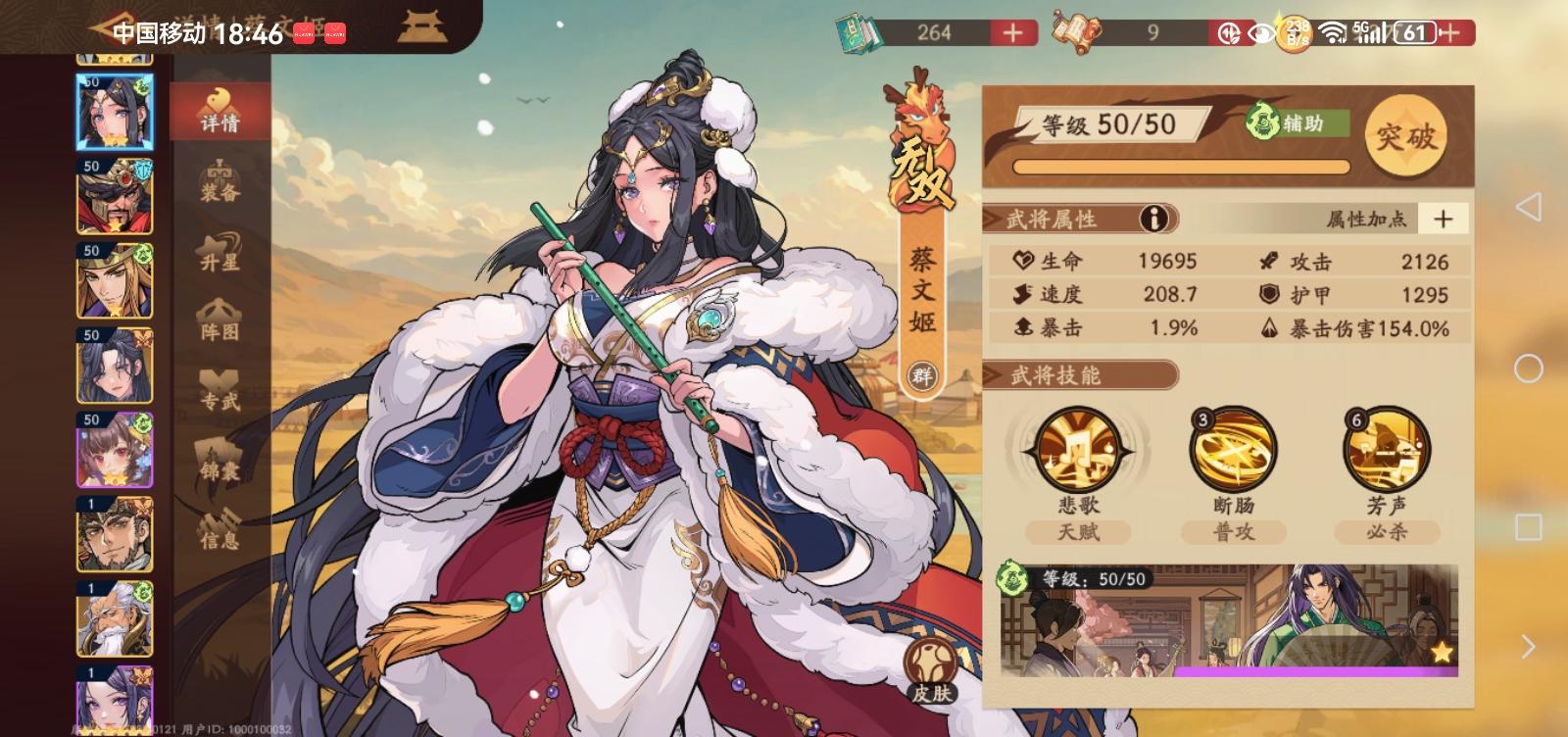周瑜的夫人,游戏里也可以相互配合小乔妹妹的培养,可以看到被动这边是靠普攻触发的,所以在打南蛮入侵的时候,对单输出(关羽这种)带的情况下,可以给小乔锦囊搭配一个借刀杀人用来更加快速触发。然后正常搭配或者说和群伤配队的话就是配上无中生有就可以了# #三国杀武将觉醒 #三武容我三测 三国杀武将觉醒 #三国杀武将觉醒角色养成