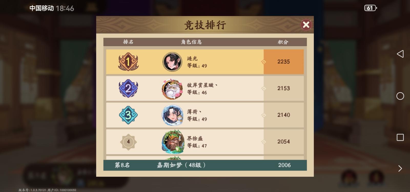 先上个六号位锦囊镇楼吧,作为三测的留念!作为一个参与三次测试的老玩家,这次也是期待了挺久,虽然,与前两测比有进步,但整体测试福利砍了,所以并没有以前的爽感,从福利来看,是快要公测了,所以咱也忍了。今天先褒后贬,谈谈我的几点感受。1.美术动画方面一如既往的喜欢,氪金点也不多,平民不追求竞技场,也能玩。2.武将设计的比较有特色,锦囊也用心了,专武有特色,装备技能也各有特色。3.拍卖会的设计不错