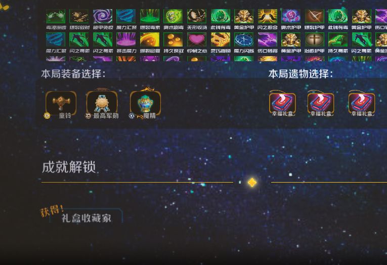 全成就24,目前进度是21。 (还有俩累计的有点久) 装备大师还差没更新的机械和反击,所以没法做完暂时是。 (希望测试期能上机械反击版本) 全成就解锁条件—— 第一次登陆游戏=启动 王者之巅=200次第一名 星能收集者=获得16000星能 BUG发明家=单局连续读档10次 超大的=战斗内单局生命上限超过15000 认真一击=战斗内单次伤害超过4000 快速收割=战斗内2秒内获胜 均衡大师=单局8种