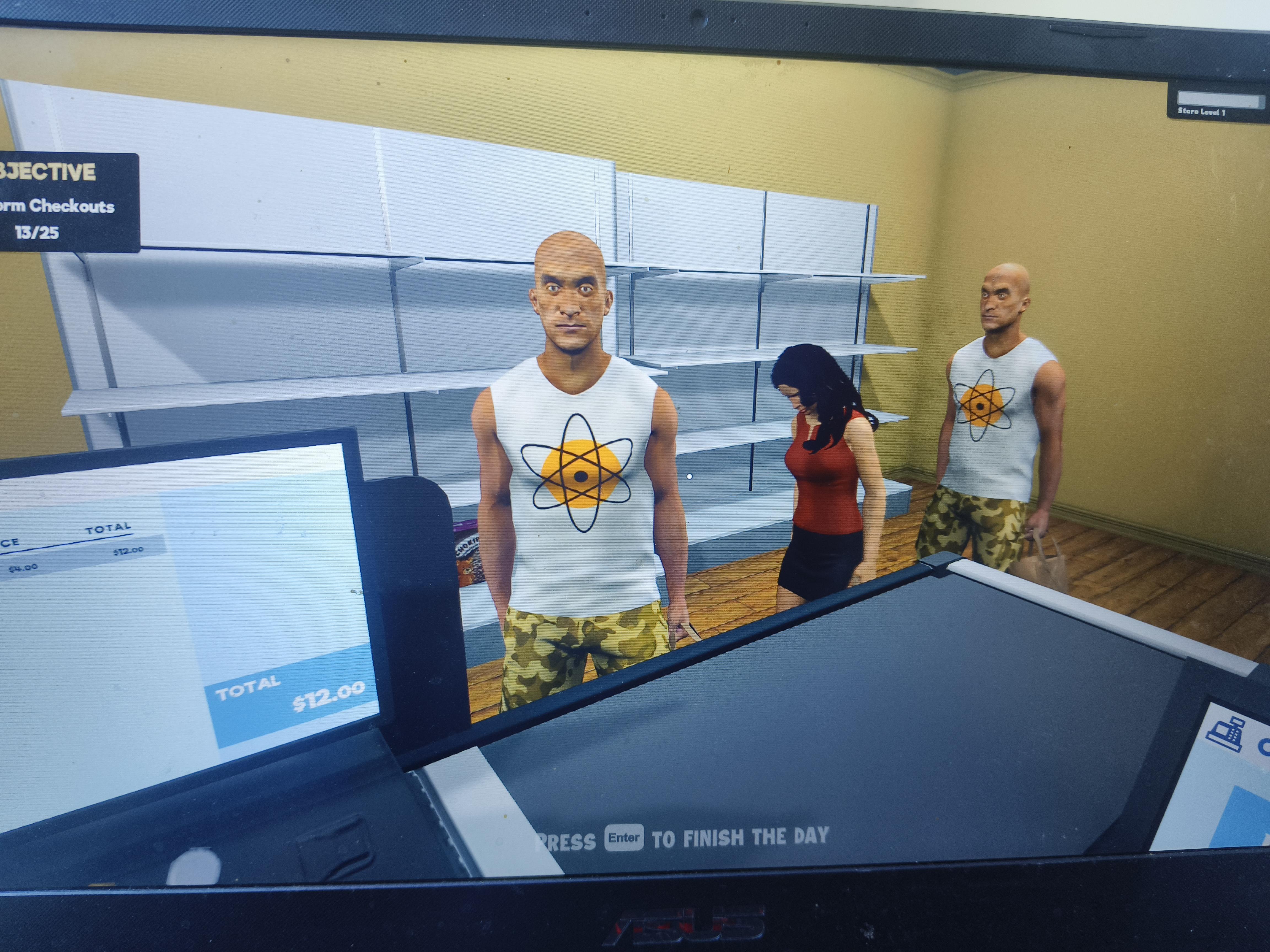 新玩这个游戏的朋友可能看不懂英文,只要记住点空格是完成结账,回撤是完成一天工作。这两个和其他有差异,其他大差不差。记住就可以了。不过我还是推荐玩有中文的,不然很难玩。
