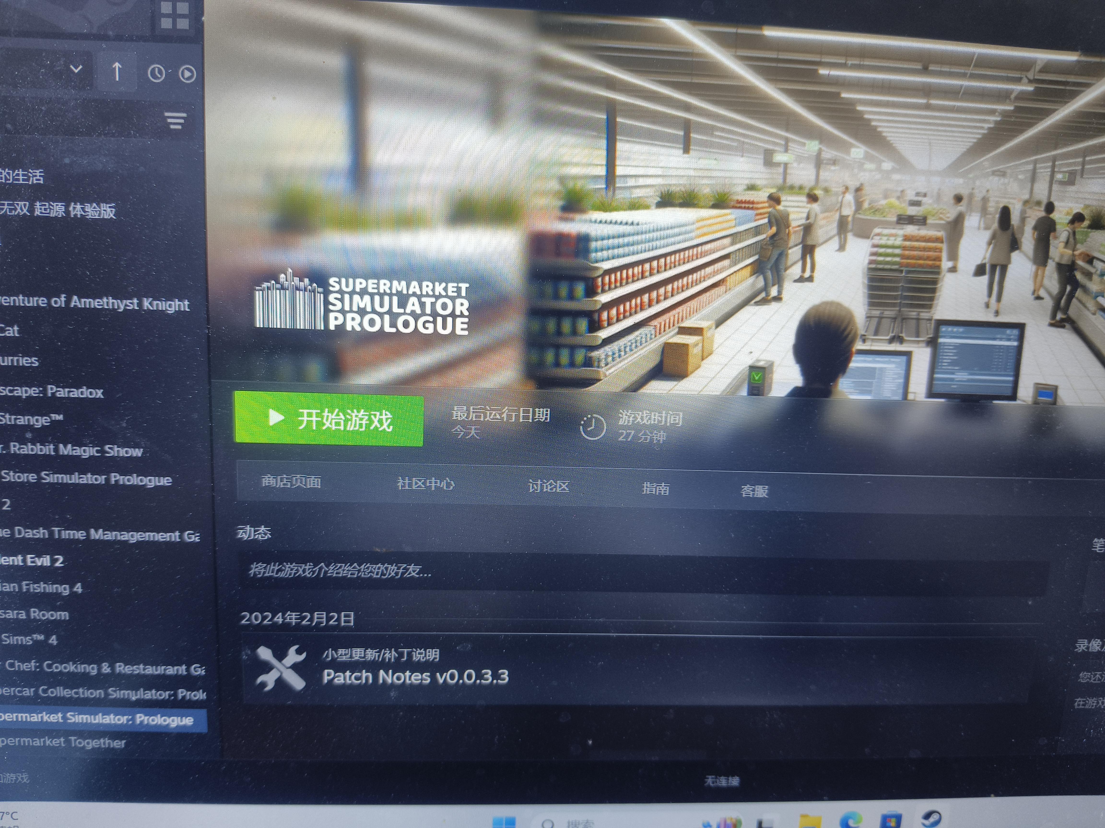 好消息是这款游戏是免费的,坏消息是这个游戏没有中文版本。进去游戏以后全是英文,全靠你的理解能力,不过如果你有同类游戏游玩经验的话可以不看提示直接上手。不懂英文的小白建议不要玩因为进去游戏你更不看不懂。Supermarket Simulator: Prologue翻译过来就是超市模拟序章。其实这款游戏也是试玩版本,进去游戏以后他就会提示你购买完整版本。