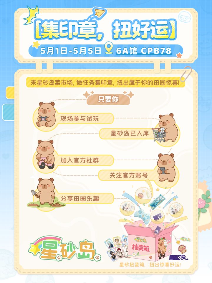 岛主们,这个五一,我们在杭州CP32支起了一个小菜摊🥬竹筐、麻袋、蔬菜......把田园的一角搬进了展馆~现场准备了掌机,大家排排坐,一起体验掌上田园的快乐(๑¯∀¯๑)🕰️时间:5月1日-5月5日📍地点:杭州大会展中心·6A馆 CPB78🍅现场小玩法:逛展的时候记得来集印章、扭好运~完成任务集齐印章,就可以去扭蛋箱试试手气,看看能扭出什么小惊喜🌟海量好礼等你来领!🎁五一,我们在