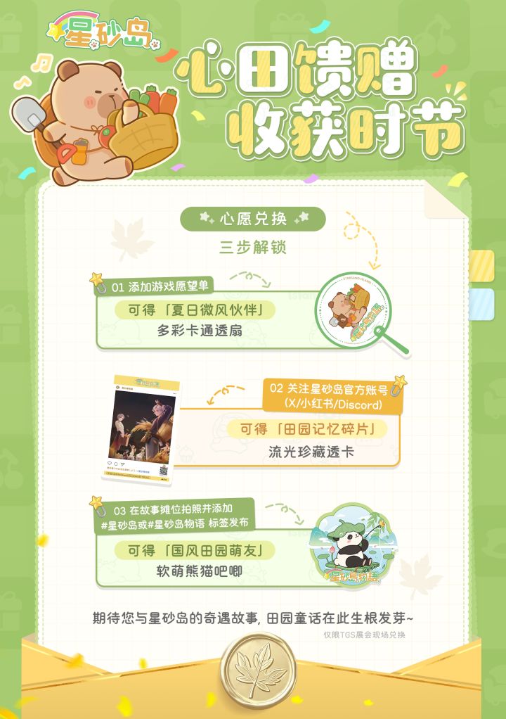 🌿 送给「大孩子」的田园童话即将启航!《星砂岛》亮相德国科隆游戏展! ✨ 玩法亮点一览: 🐼 遇见超萌熊猫、邂逅特色动物伙伴 🎋 身着国风传统服饰,泛舟栖云湖、漫步幽静竹林,沉浸式体验山水画卷中的恬淡意趣 🛠️ 打造个性化房船、为宠物搭配潮流装扮、构筑梦幻鱼缸,尽情挥洒灵感! 🎮 体验丰富合家欢小游戏,享受温馨社交乐趣~ 🤖 智能农场自动化,助你轻松管理,专注享受田园生活! 📅 【千岛之约】测试招
