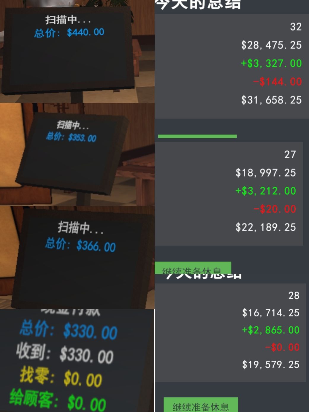 有些单笔成交价比较高的我观察了一下是连带率高,目前所有桌子都是豪华桌,每一桌的菜品是多种菜混合,据我观察一桌只放一个菜连带率没有一桌多个菜高,但是混合放菜品最大的问题是很耗费时间,营业额差距一天大概在300–500左右,饮料柜在不做任务的情况下可以不用放,这玩意很影响销售额,所有包房开启后一天营业额最高是三千多,现在我仍然有个问题,这个任务好像没有太大必要非得做,而且不知道总共有多少做不做的完,不