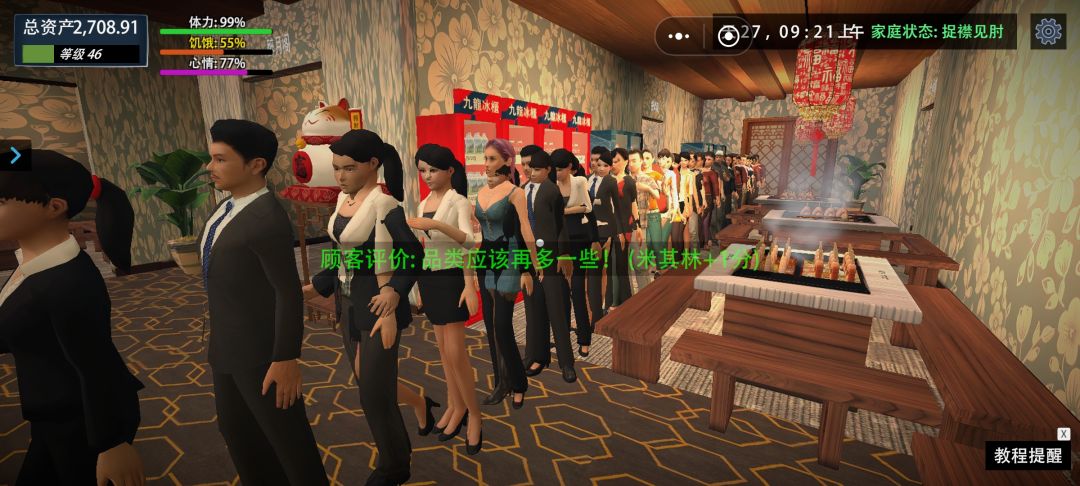 1前期资金管理规划 2中期解锁购买顺序 3后期每日行程管理 4如何避免顾客差评 1前期资金管理规划 既然我们决定刷米其林三星2000分数,相信小伙伴们都是对游戏有了一定的了解和体验,那么问题来了。说到刷分数,就要舍弃装修这一方面,尽量前期把所有的资金都投入到赚钱当中。 前期给了我们100初始资金,全部用来买当前已经解锁的菜品。普通桌子4个格子,买2箱鱼豆腐2箱香菇,刚好96元。然后前期是不用回家的