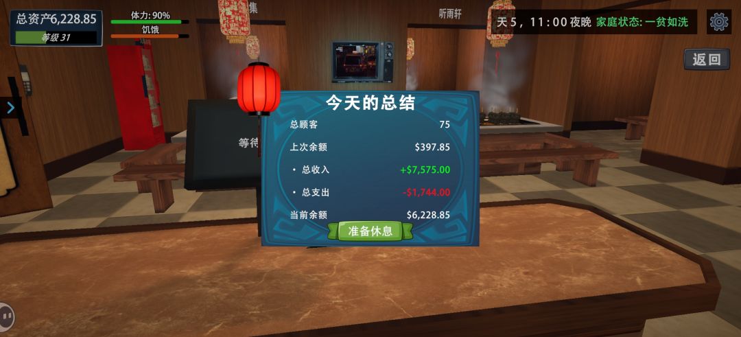 #我的关东煮小铺 #我的关东煮小铺攻略 #我的关东煮小铺建议 #我的关东煮小铺装修 我目前情况如图,开业77天 没算家居花了多少,但光是名画就15w➕了,其他家居也买的都挺贵的,粗略算下来就差不多按25w来说吧,图左上角手中现金2.5w,银行存款如最后一张30w,加在一起77天净利润60w左右,应该还会多点 前期不要买家具纯搞钱把所有包厢开完,后期再摆满高级食材桌子 高级食材虽然顾客买的少但一个
