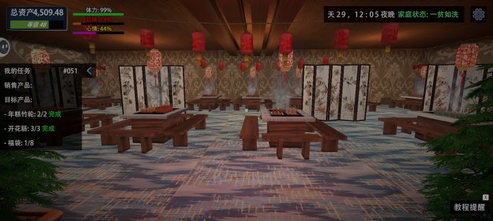 另外给些建议:有时候改装修设备放不了,可不可以加个二维平面或者区域范围,哪些地方可以放哪些地方不能放。还有那个免费的服务员,东西拿了扔外面😖我也不求她帮我整理,但是能不能从哪拿的放到哪去。另外,放食材的时候,空白区域服务员能不能优先放没有的食材,不然几个锅都是同一件食材。最后就是仓库货架会穿模,明明扔的第二层,掉到了第一层。最后问个问题,舞龙舞狮的那个声望怎么提高,保镖又要从哪找。