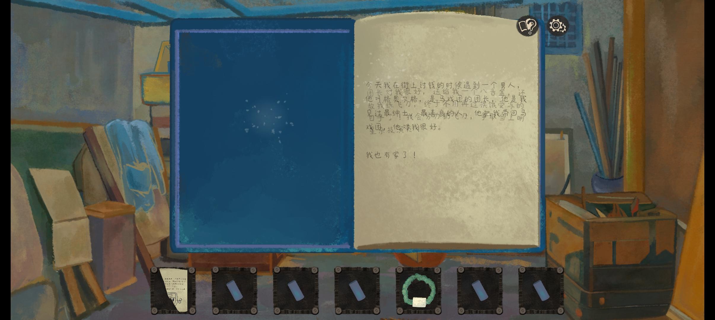然后是不足 因为刚出有点bug很正常 不知道是我的问题还是游戏本身的设计 到走剧情小视频的时候会黑屏只能听见声音 还有一个游戏关卡走迷宫我动不了方向键(到底谁的问题咱也不知道。)然后就是玩法上的 说是解密游戏 但剧情远远大于要解密的地方 是否有点重心偏移呢?(我不怎么玩全是剧情的解密游戏 只是个人观点)还有bug就是在解密过程中会卡顿 一些道具会出现捡不起来的现象 然后在道具边上的对话每点一次就会出现一次 会显得比较啰嗦吧 这边有小建议 那个小对话不用出现太多次 要是怕玩家记不住可以像剧情一样记录起来 不然每次不小心点到都要从过一遍很烦人 不过总体是不错的