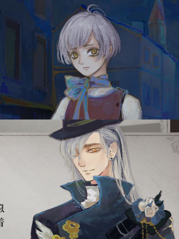 就是我发现尤莱亚和主角发色和瞳色一样,他们可能是兄弟(我放一下对比图)然后在看那张人物介绍图的时候,我在左上角发现了这个,根据头发的长短和颜色,嗯,估计就是主角和尤莱亚了