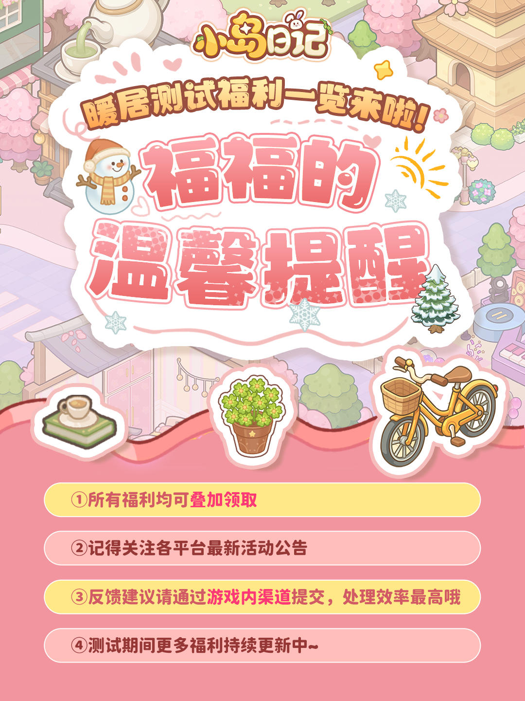 📢《小岛日记》暖居测试定档1月28日!冬日的小岛因你而温暖~❄️