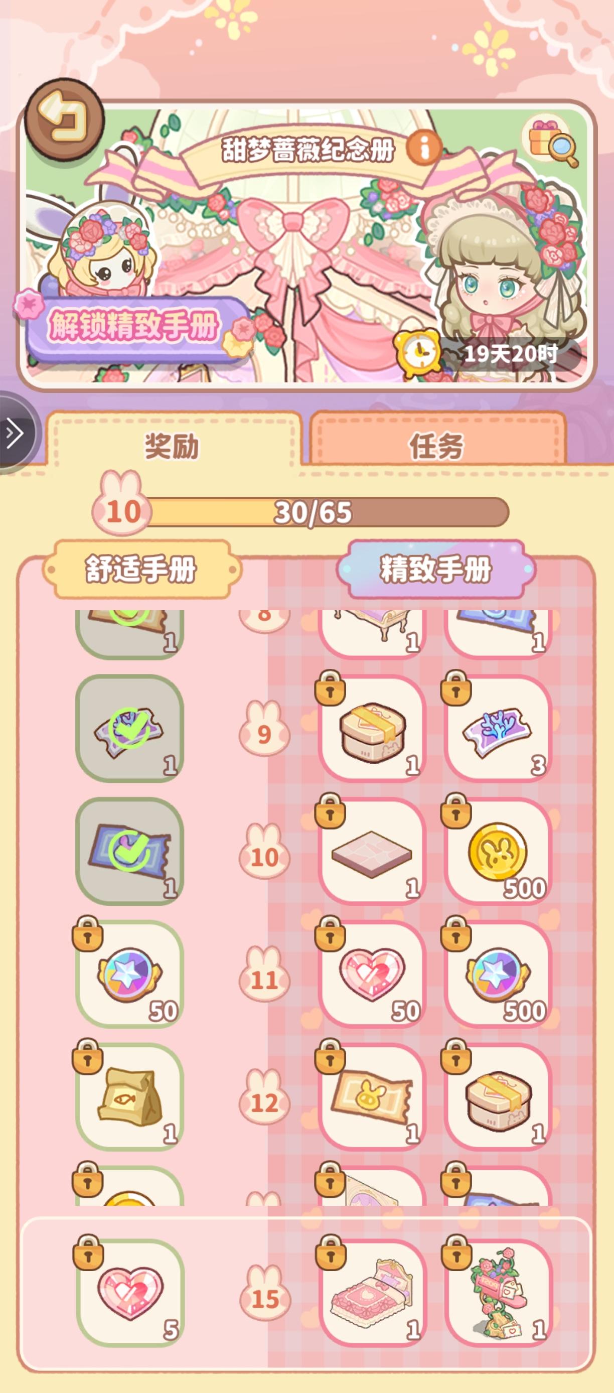 甜梦蔷薇纪念册这块点击完成任务的动画速度是正常能接受的,但是这样对比一下所有任务领取奖励(包括纪念册)的动画就显得很慢了,更何况还没有一键领取奖励这个功能,对我这种喜欢卡点快速过日常领奖励的玩家来说并不是一个好的体验,建议调快些或者给个双击加速也是一个不错的体验。氪金的话感觉小月卡18块公测的时候个人感觉应该是大部分玩家都可以接受的,希望到时候别突然涨价吧,但是大月卡直接猛涨到45还是有点高了,
