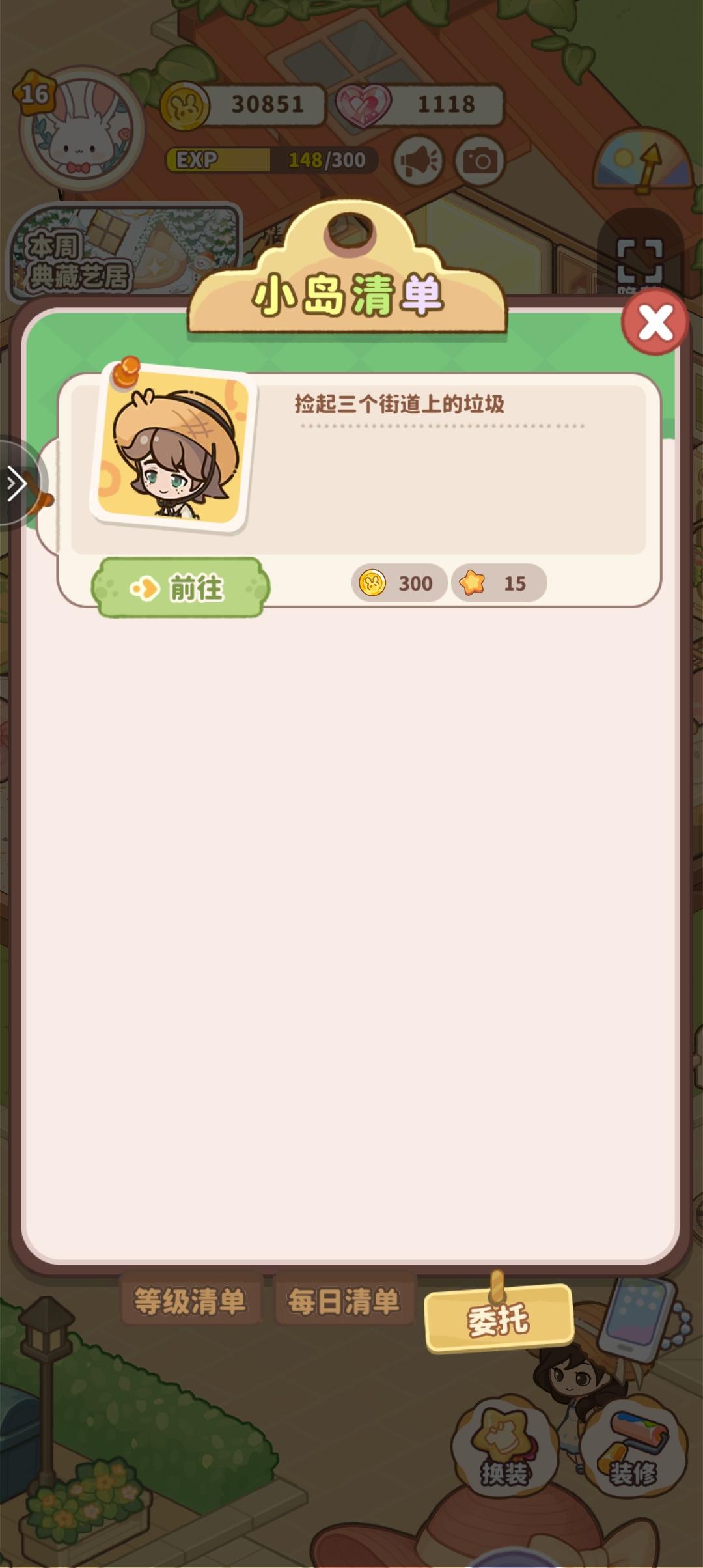 这个接力也太贵了,要是30拿下一整套还好:卡级也好严重,我昨天刚玩任务清完了只能等明天刷新新清单了吗?不然就只能装装修;这个捡垃圾任务也好迷糊,地上没垃圾只能点垃圾桶,但是这三个街道的垃圾桶我都点了,根本点不动,希望能改(做明显点);最后,这个衣橱!真的好难!能不能调整下难度!? 其实我挺喜欢这游戏的,就喜欢装修换装,希望你们这个游戏也能越来越好吧,多听听玩家的意见