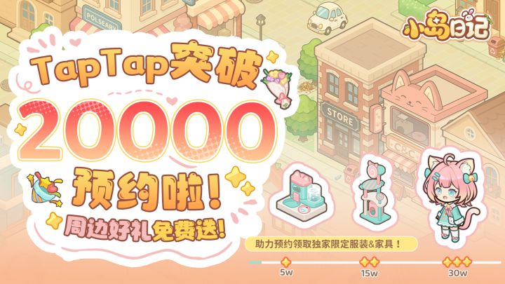 小岛日记2w预约达成!🎁Tap预约里程碑奖励公开!多重奖励等你拿~