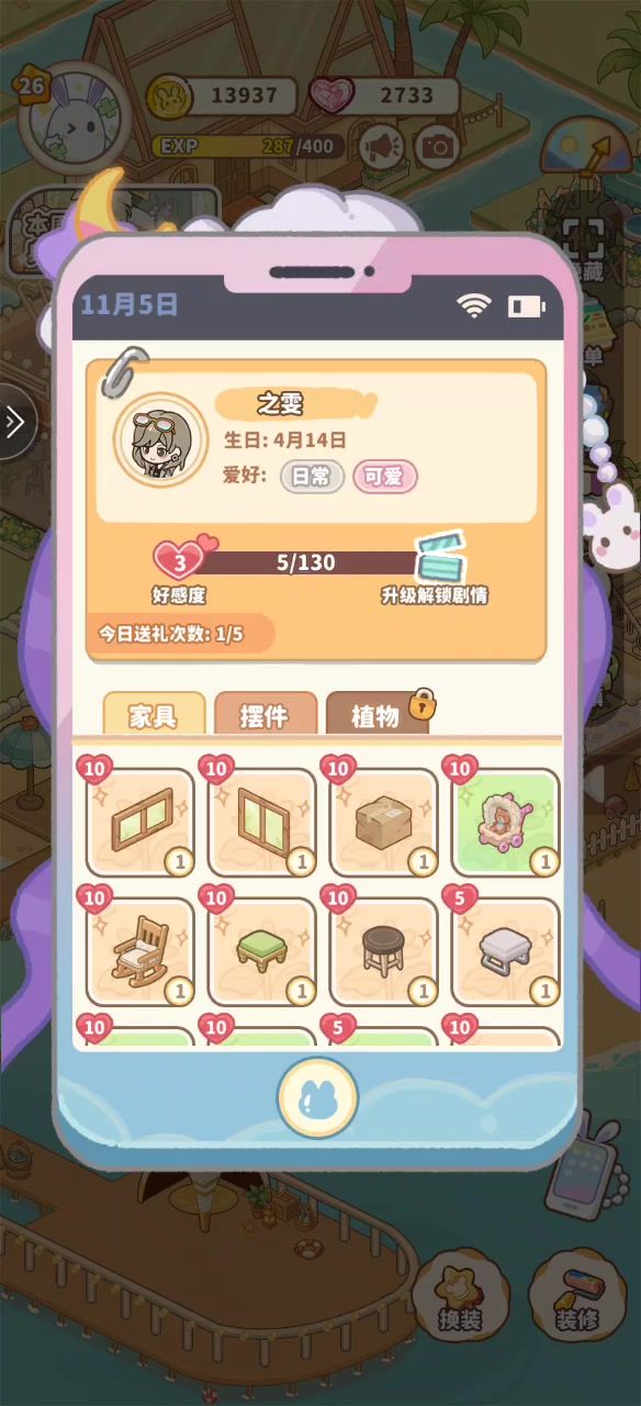 有任务的时候布置房间