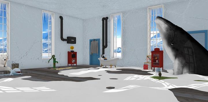 第一个下载通关后来写攻略了观察旗子,单个旗子白底蓝纹,双旗子左边红底白纹,右边蓝底黄纹到留声机上方箱子输入正确颜色,获得钥匙钥匙打开望远镜下的箱子,获得扳手扳手拆下木板螺帽,看到水泵需要扭动阀门观察企鹅下的冰棍,看到顺序为右 右 左 左 右 左 右扭动后水泵变成流水状态浴缸的窗口那边,竖起来的冰锥长度为1 3 0 2到冰箱上层输入同样长度,获得模具和香蕉模具拿到水泵那里装水,
