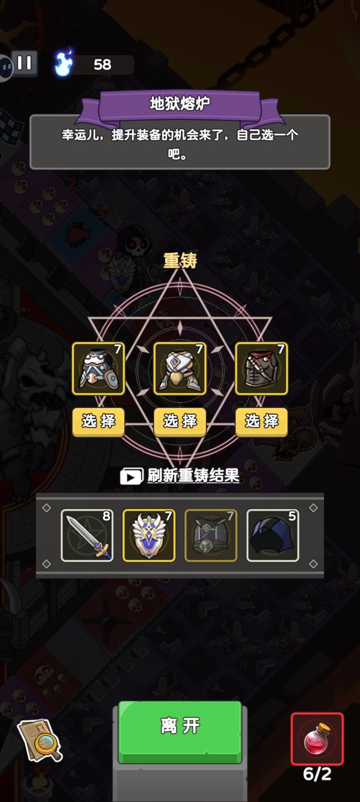 地狱熔炼有问题,熔炼完成装备不会改变,还是原来的装备