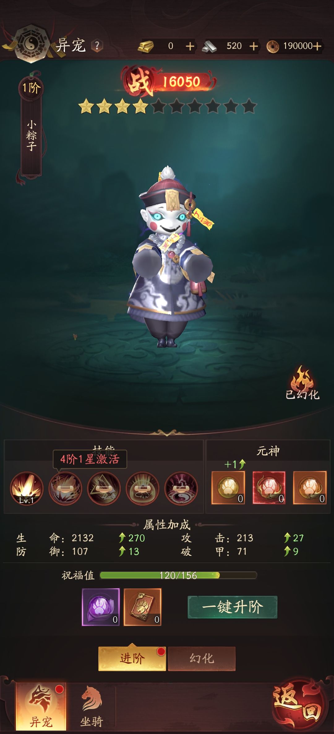 异宠规则 1.升星可增加祝福值,祝福值满后升星成功。 2.每10星可提升一阶。 3.升指定阶数可激活对应的技能。