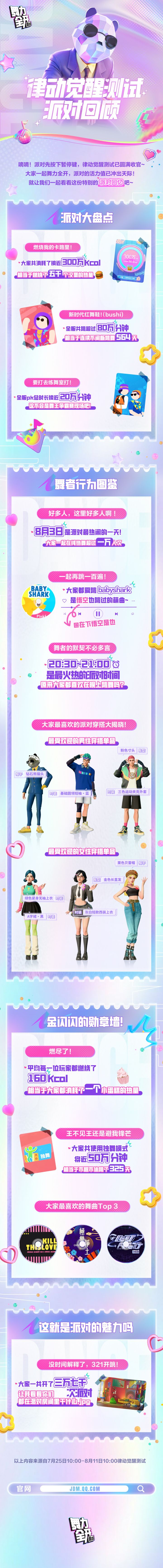 派对音乐渐缓,但快乐不止!律动觉醒测试已圆满收官啦~感谢每一位参与测试的玩家,对《舞力全开:派对》的支持~就让我们相约,在下一场派对再次相遇吧!现在,请大家查收这份我们共同创造的派对回忆吧~