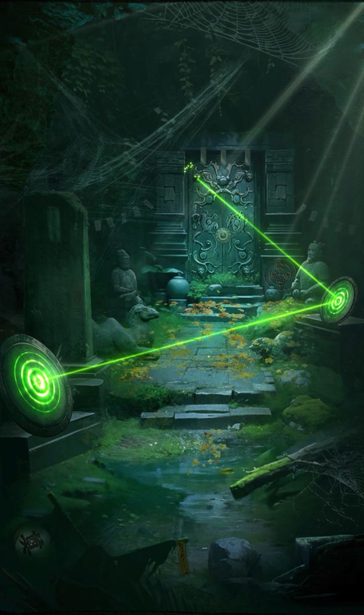 |||第一章:冥门密道[墓室外]1.点击拾取地上的【左边铜镜】和【右边铜镜】2.把【左边铜镜】和【右边铜镜】放到石台上,然后调整铜镜的角度;点击三下龙头,将光线投射成北斗七星形状,激活石门中间的四象八卦机关3.拾取地上的【桃木棍】、【黑驴蹄子】和【扫帚】4.点击石碑,用【扫帚】清理石碑上的青苔,获得线索🔶红-四、绿-二、蓝-一5.点击查看墓室门右侧石柱上的刻痕,获得线索🔶四象及