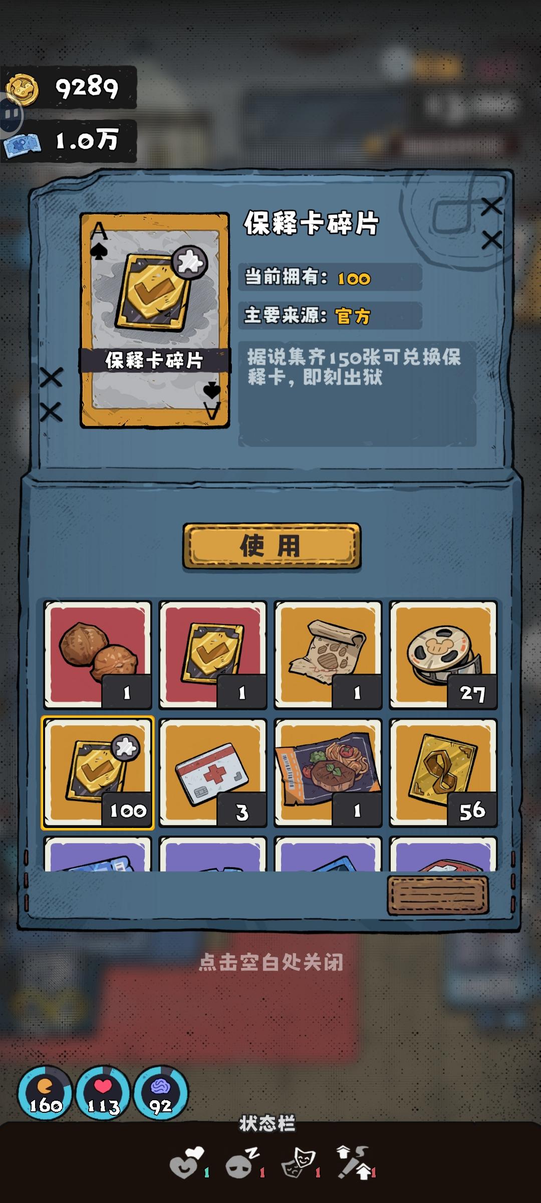 历时49天,在我攒了100个碎片的时候,在兔子那边的盲盒里抽到了保释卡。这个档离攒齐150很近了,我还会继续玩,攒齐再走。