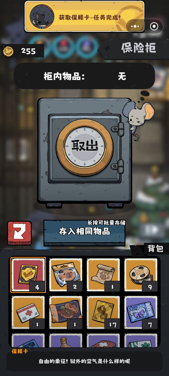 谁懂啊当时正攒钱准备越狱,结果青藤会盲盒开到保释卡。轻轻一点居然结束我的一周目啦!~interesting
