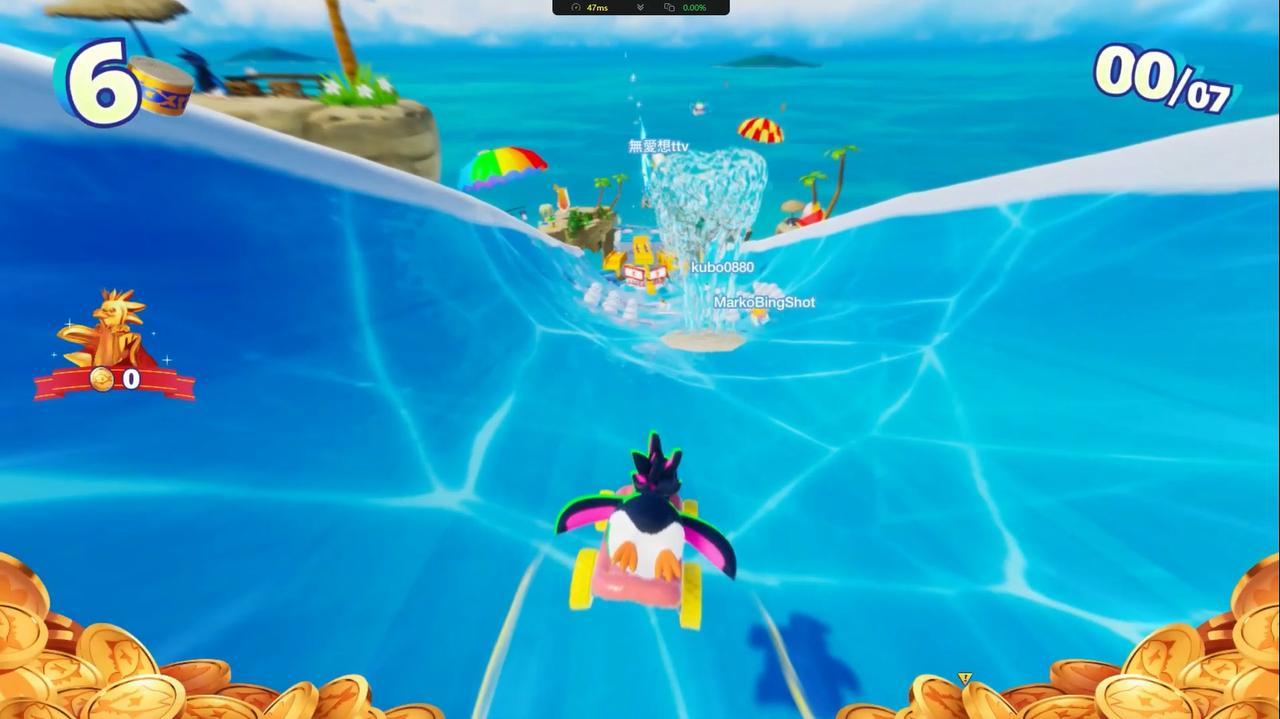 滑翔伞就更厉害了,它不需要积累罐头,只需要在企鹅在滑行中拾取到就可以直接生效,拥有滑翔伞的企鹅能直接变成空中滑翔的状态,虽然持续时间不是很长,但是可以利用这可控的空中滑翔直接无视跑道地形来抄近路,有的弯道或者正常通过时比较费事的地方,滑翔的话就可以直接逾越而过,节省大量的时间还不用担心受到对手的干扰,效果堪比降维打击,利用恰当的话可以直接扭转乾坤成为制胜的关键。