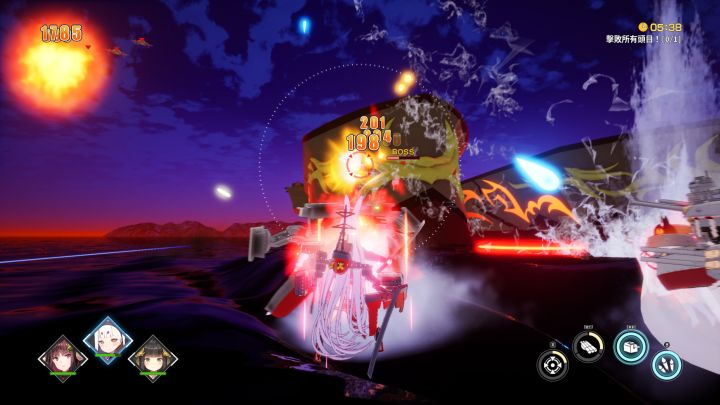 本作战斗过程非常枯燥无味,没有我想象中的那般爽快。进入到作战场景后只需要将准信对准目标,按下攻击键攻击即可,选择简单难度游玩时甚至不需要较大范围的走位,直接贴着敌方舰娘攻击就完事,就是没有给舰娘升级装备,打起来伤害较低,需要用时间慢慢耗。