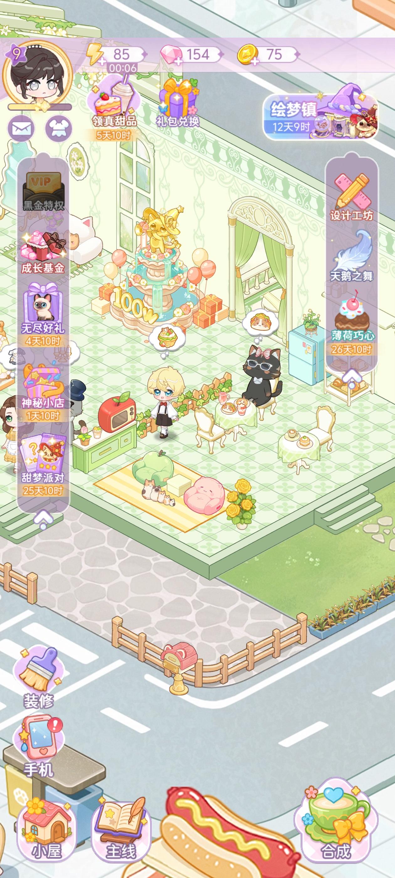 另外这个游戏算是融合的内容比较多的。其他大多数是装修店铺或者家,这个既有店铺也有家,甚至还有换装和模拟经营类的玩法。且服装和家具除了合成、主线、任务获得以外,就是用游戏内资源兑换、抽奖以及氪金获得了。大部分要靠后者,毕竟合成相对来说要很肝