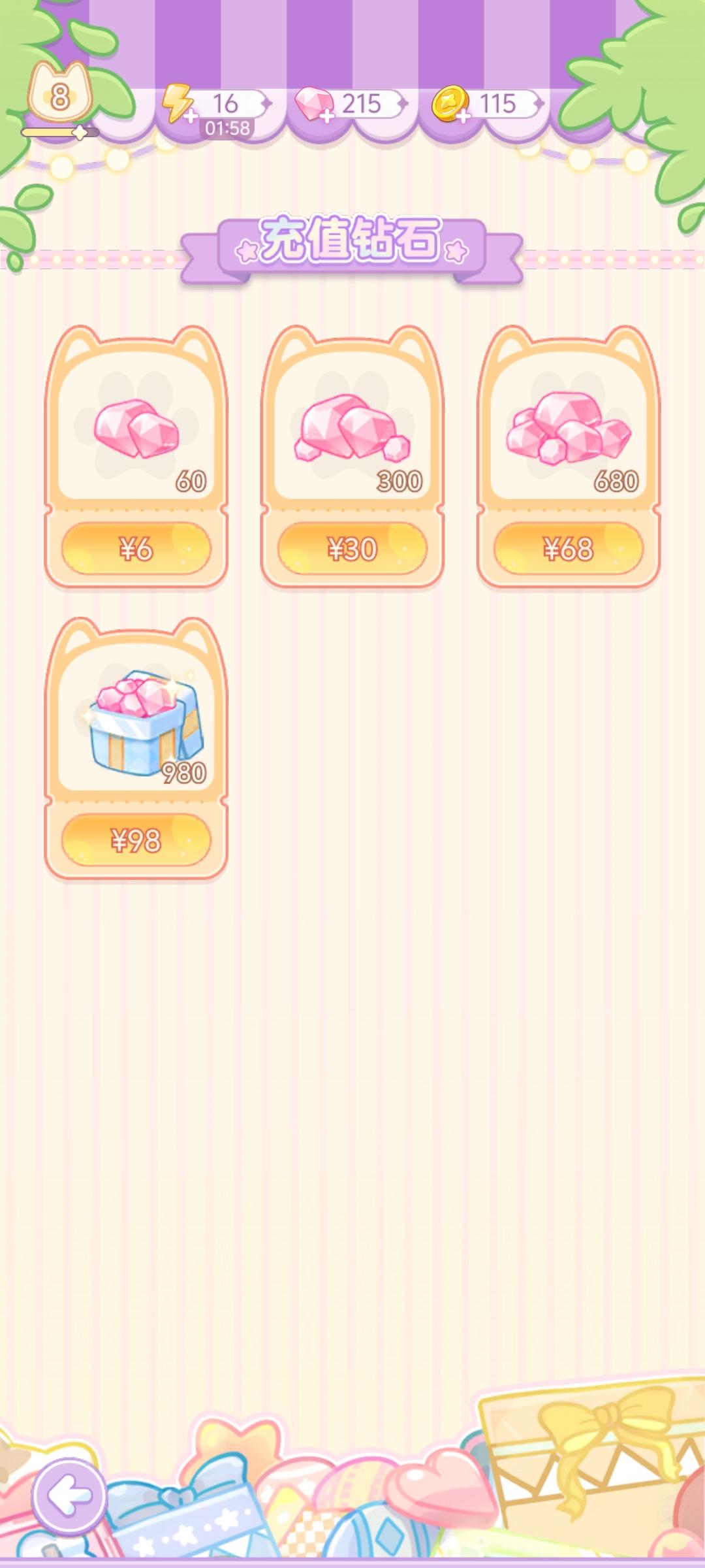 冲着画风喜欢来的。画面音乐确实不错,合成类也能接受吧,我个人不反感。但是你这个体力没得也太快了,现在8级我已经很难做订单了你知道吗😩你要是跟那些小程序的合成游戏一样,每天看广告能回几次体力,我都能少说你两句。