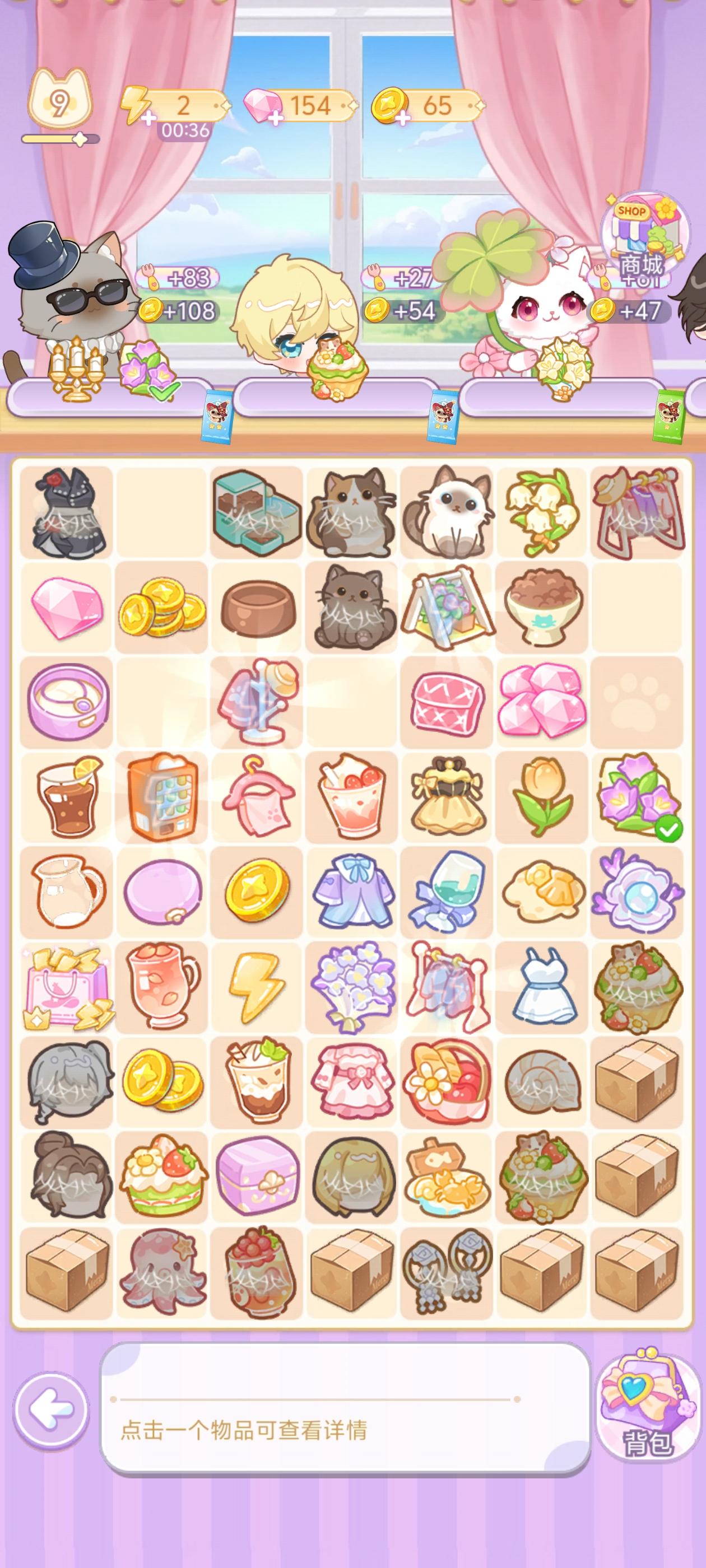 但是一开始上手玩的时候合成衣服能穿到人物身上确实让我惊艳了一下,开始有点兴趣玩下去了。在棋盘内合成的衣服及配件可以给人物穿戴,合成的蛋糕饮料盆栽则可以作为家具摆件放在店里,且推进主线可以选择的家具除了一些固定位置的硬装以外,可移动的家具都是可以随意摆放的。这些是和其他我玩过的棋盘合成类游戏在玩法上不一样的地方