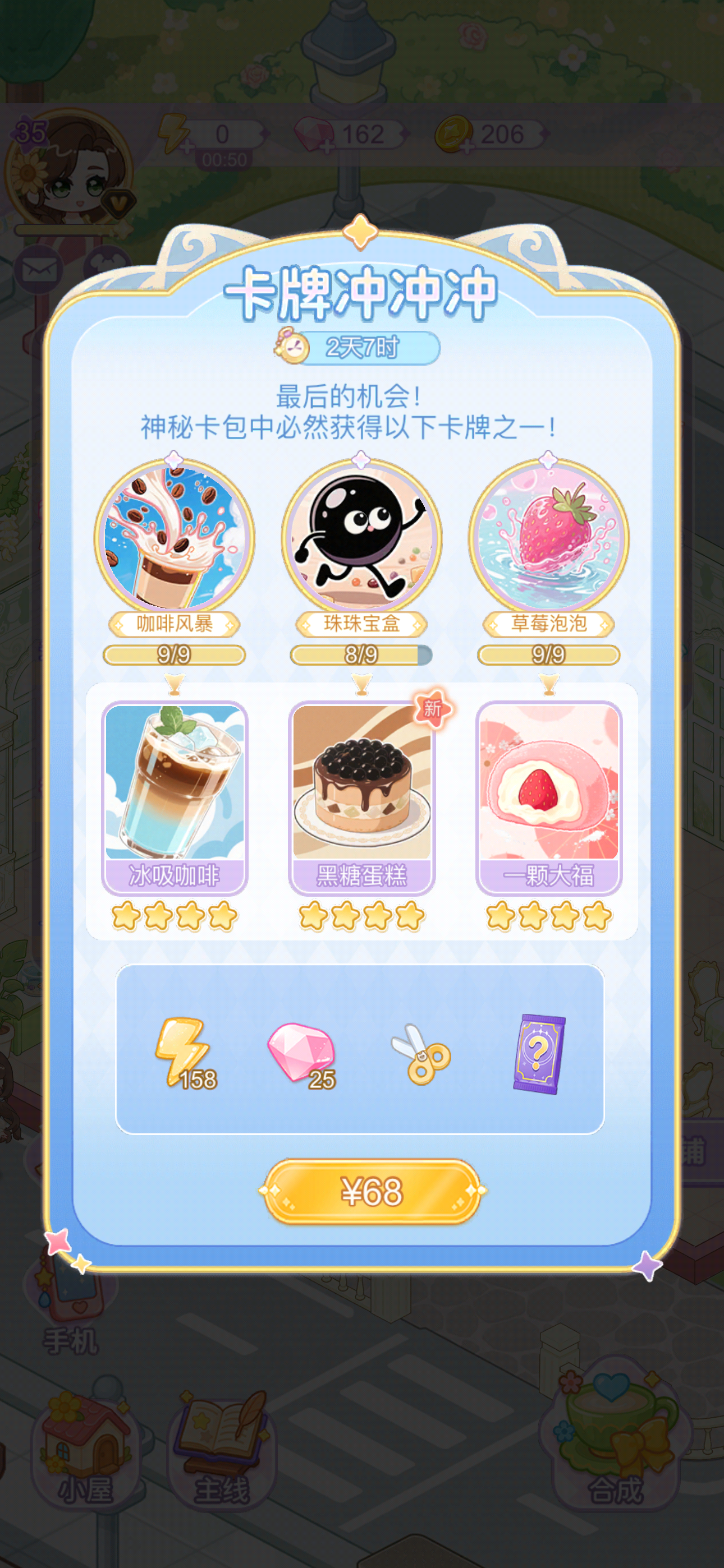 帽子一合成到六级就会有订单出现收走 啥时候能合成到七级是没有别的订单了吗 总是出现8级水和衣服订单 一出还好几个 完成一个还有一堆抽家具的券给的也太少了 除了每天免费和之前送的几张 一共也没有过几回十连抽 一两回吧 没等凑够十连呢 又换新卡池了