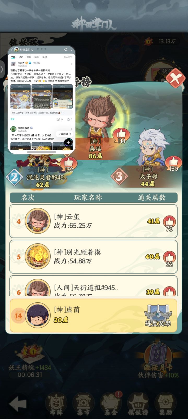 我没搞明白这是新bug还是啥,看了半天看不懂这是怎么打到的,他角色要星没星,气运也没装备也没等级这就能打到65了?除此之外那个春日活动20层瑞兽试炼多少人一队3千多万打不过去,他一队1800w过了?