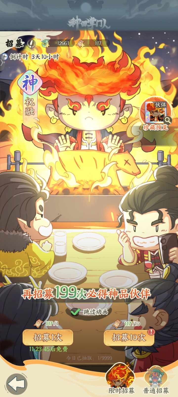 明天开服第七天要开李白,天界攻城好像第八天开。神话卡: 1,猴子神话需要冲128,放弃。 2,祝融抽到12星就停手了,留票抽下一个神话。 3,金乌白嫖每天活动慢慢升。 4,明天开李白,不知道能不能白嫖拿到。 5,后面轮换神话金灵,金蝉子,神农就留着票慢慢抽。评价: 可以消遣,首充六元玩,游戏节奏慢,也没被榜一拉开多少。目前资源缺口巨大,升级和敲装备的材料根本不够,打秘境还需要两个队