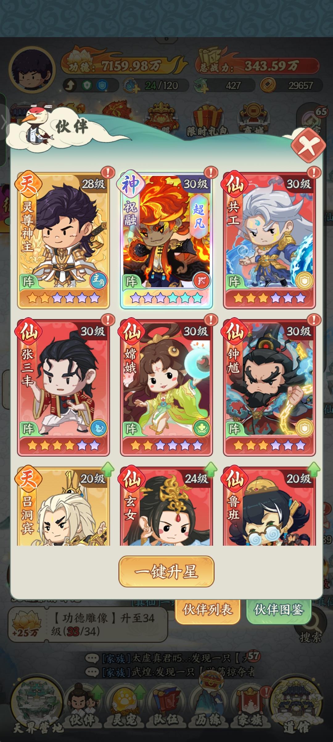 这是我玩了几天的情况,我是零氪,只能玩成这样了,现阶段基本上大佬们通用阵容就是,金乌丶悟空丶申公豹丶三太子丶祝融丶加上主角,零氪基本上就是祝融丶共工丶钟馗丶张三丰丶嫦娥(金乌,金乌零氪现阶段活动撑死能升个三星左右),(金乌丶祝融从获得开始都是神话超凡品质,起步就是10万战力,悟空的话,需要专属道具才能升神话品质,上面图片有价格),总的来说,不氪金,打关卡贼难受,零氪也能玩,就是玩的有点累,活动排名
